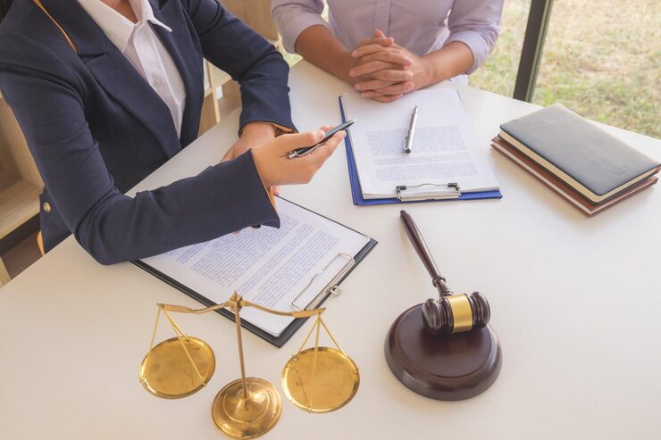 Primer plano abogado cliente empresario sentado oficina negociando juntos utilizando documento 37714 1